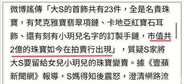 先是珠宝拍卖的传闻闹得沸沸扬扬,小S和S妈赶紧出来否认,说没见过什么珠宝。