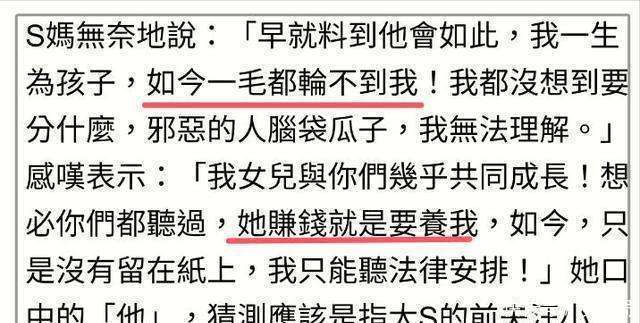 紧接着,S妈又开始抱怨没分到大S的遗产,让人觉得这剧情简直比连续剧还精彩。